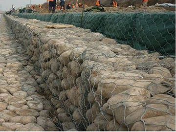 高爾凡石籠網(wǎng),又稱格賓(英文gabions)結(jié)構(gòu),是由多個石籠按照一定建造方式疊砌而成的工程結(jié)構(gòu)。其基本工作單元為填石的石籠,填石要滿足密度,粒徑和級配,形狀,擋風(fēng)化性,不腐蝕性等方面的要求。石籠是指能填充石塊或其他填充材料,有一定模數(shù),用作結(jié)構(gòu)單元的金屬網(wǎng)籠,依厚度又分為網(wǎng)箱和網(wǎng)墊。石籠結(jié)構(gòu)具有很多優(yōu)點,如良好的生態(tài)可恢復(fù)性,變形性能良好,整體性強,透水性良好,結(jié)構(gòu)長久,工程造價低,制作,運輸,施工方便,易于維護和改造等,可用于公路鐵路邊坡支護,礦山護坡,橋墩加固,海岸防護,河岸河床防護,防波堤,建筑外墻裝飾,單個裝飾石籠結(jié)構(gòu)等。